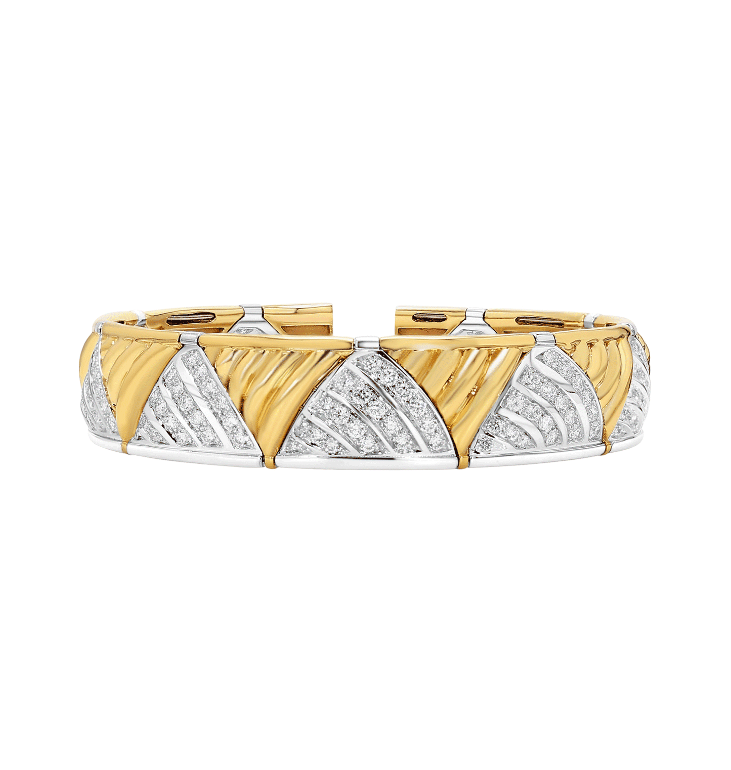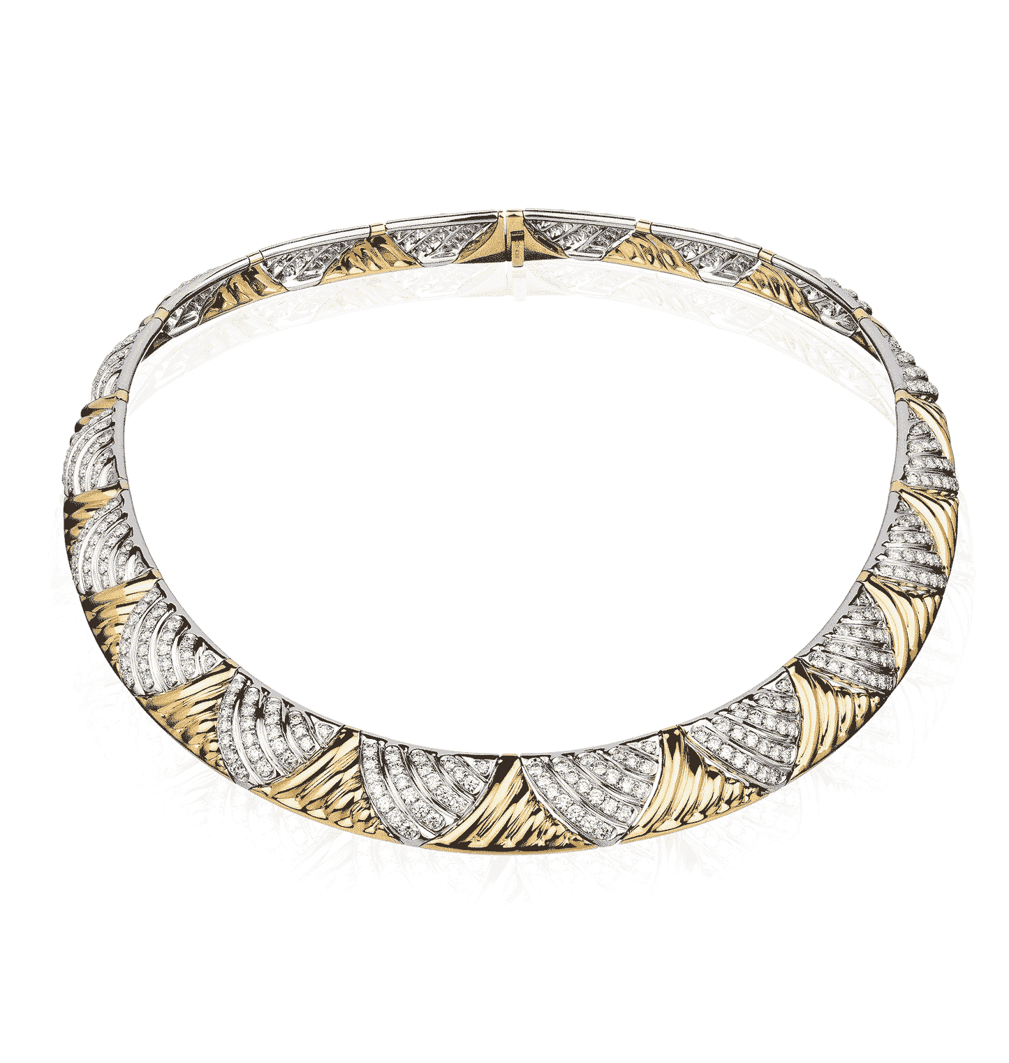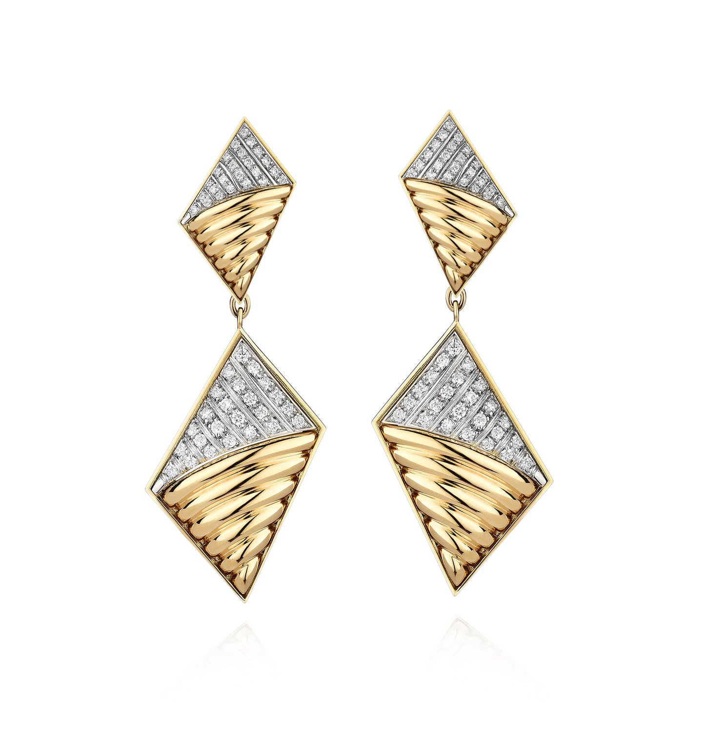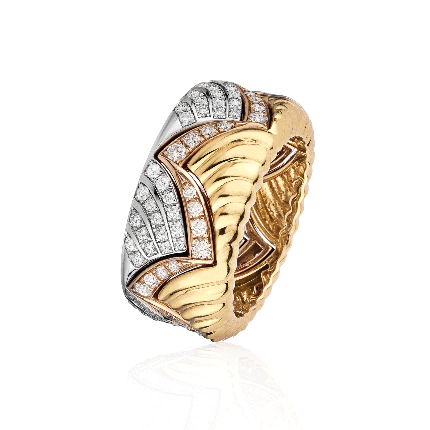L’oro scolpito si dispiega in onde luminose, riecheggiando la geometria senza tempo delle piramidi che si innalzano verso le stelle. Tra luce e ombra, superfici tempestate di diamanti evocano un firmamento celeste, dove la materia sembra dissolversi nell’infinito. Ispirata al mitico allineamento con la costellazione di Orione, la collezione diventa un ponte tra la terra e il cosmo. Orione non si indossa semplicemente: si segue, come una guida silenziosa di luce e destino.